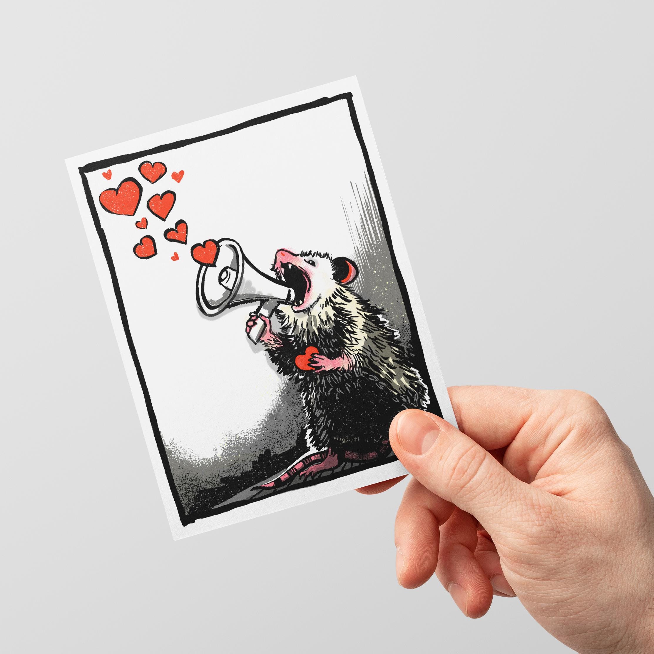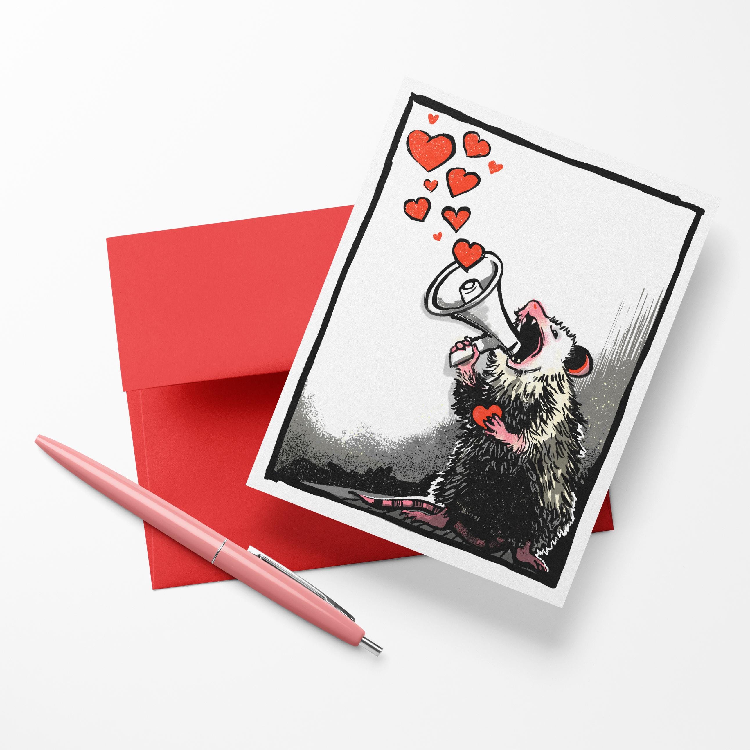 Make sure they hear you by sending this ridiculous card of a possum screaming love into a megaphone.